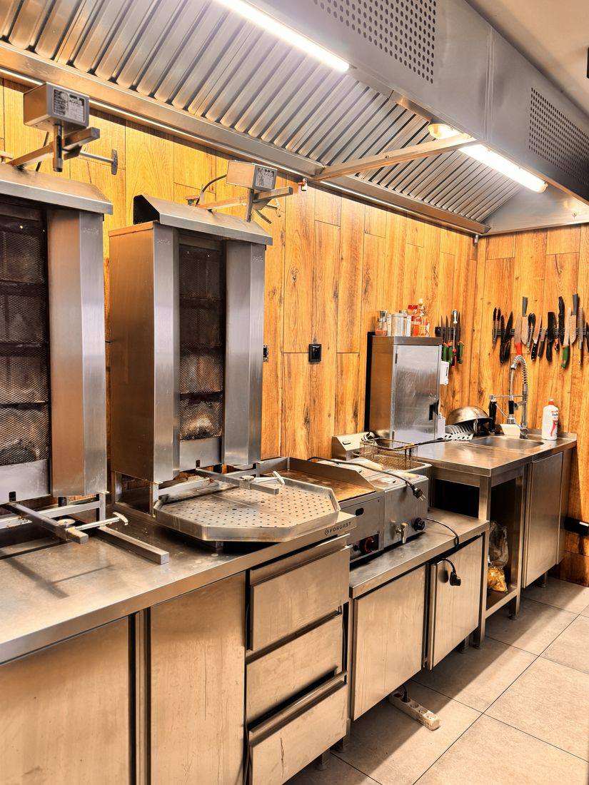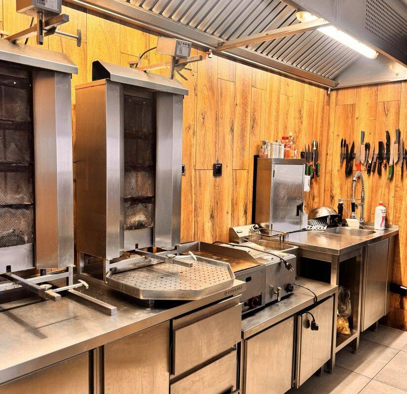 • Fully equipped professional kitchen (kebab machines, grills, fryers, ovens)
