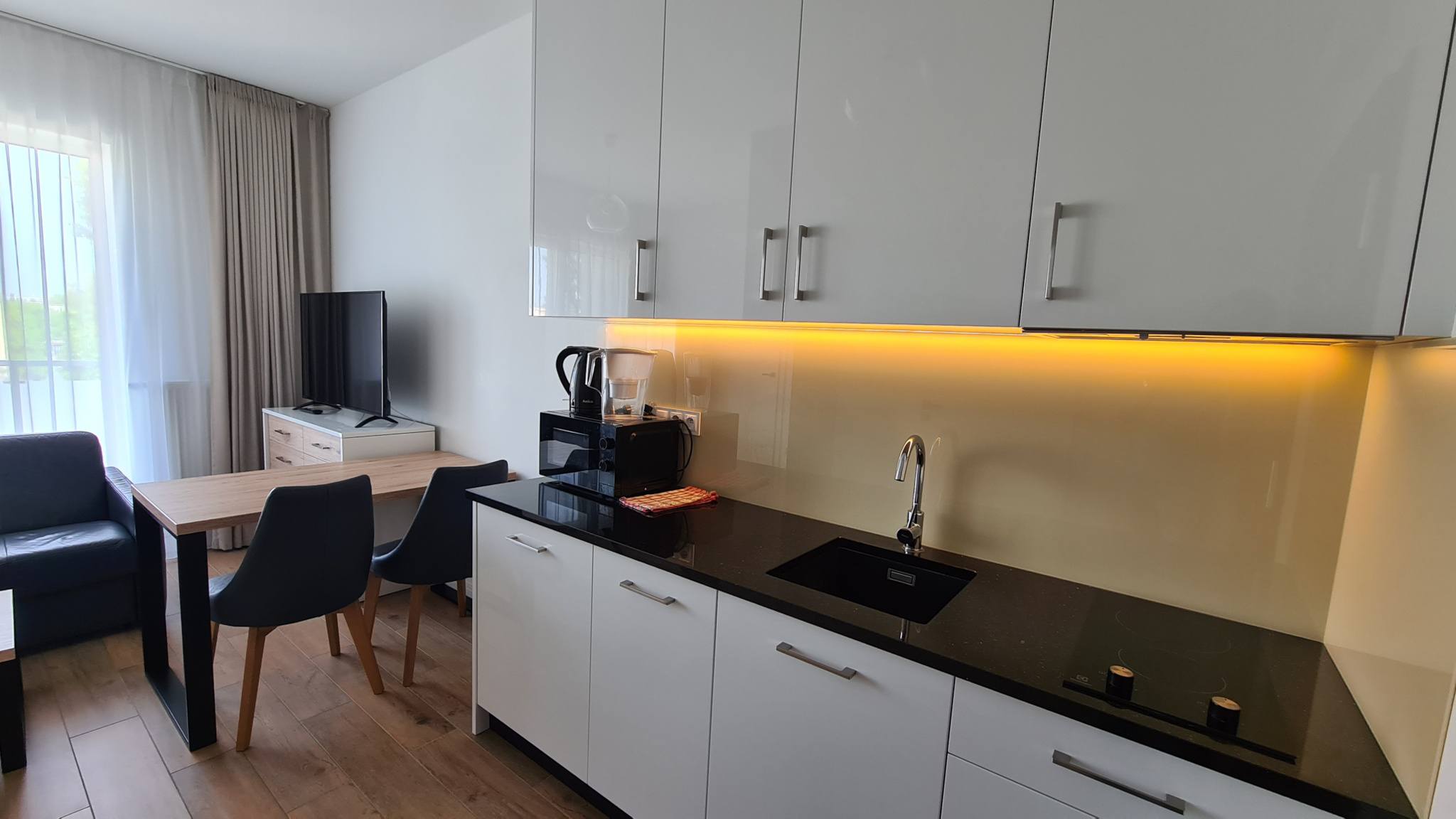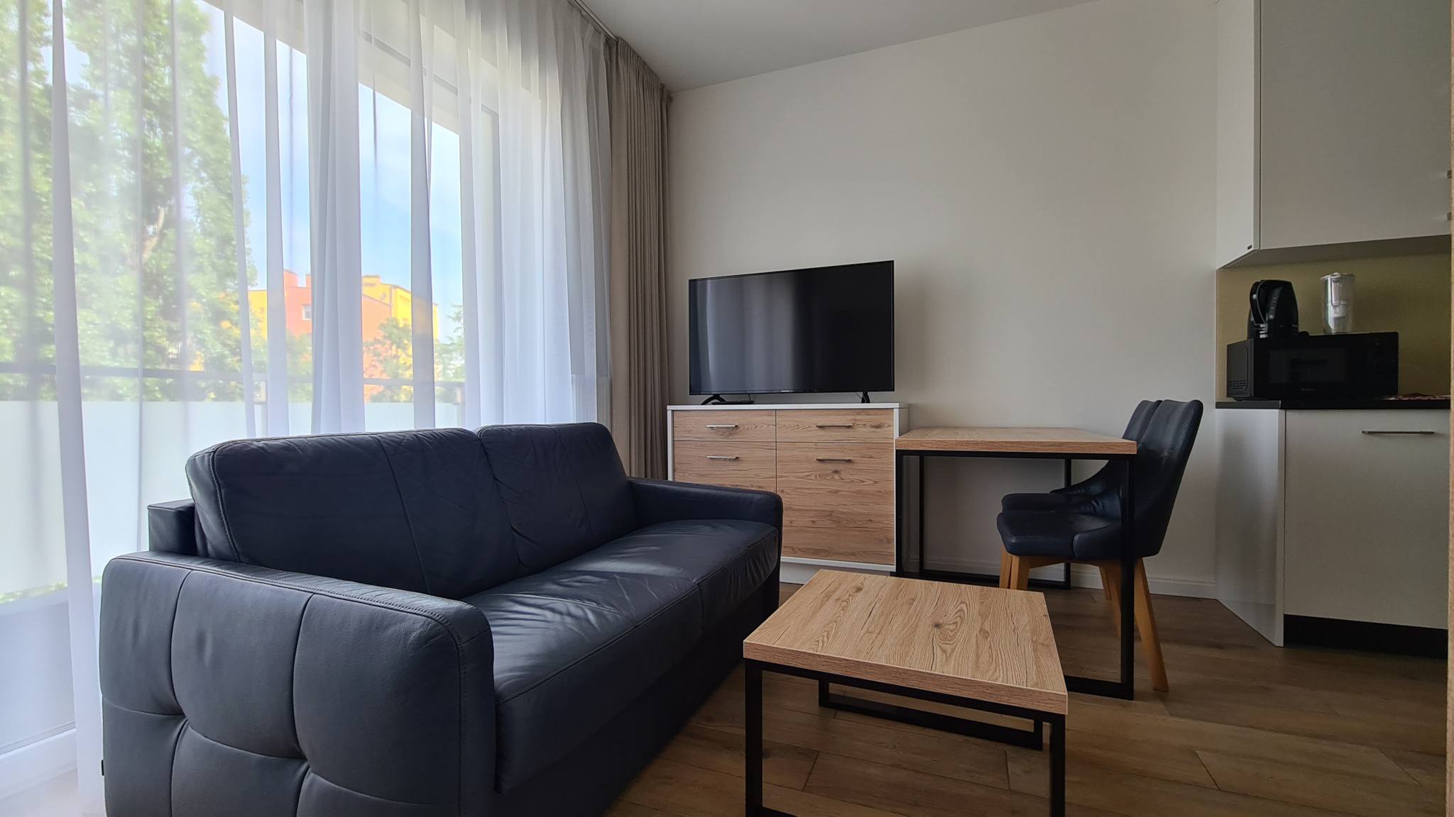 • Layout: 2 rooms (living room with kitchenette + separate bedroom)