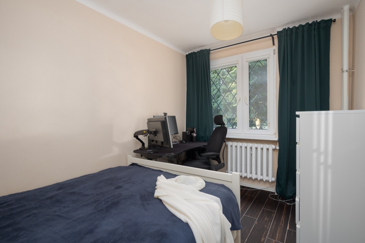 Varşova’nın en tercih edilen bölgelerinden Mokotów’da, sakin ve yeşil bir çevrede yer alan bu daire, konforlu bir yaşam sunmaktadır. Yüksek giriş katta bulunan dairenin pencereleri ağaç manzaralıdır. Güvenlik için pencerelerde dış demir korkuluklar bulunmaktadır.